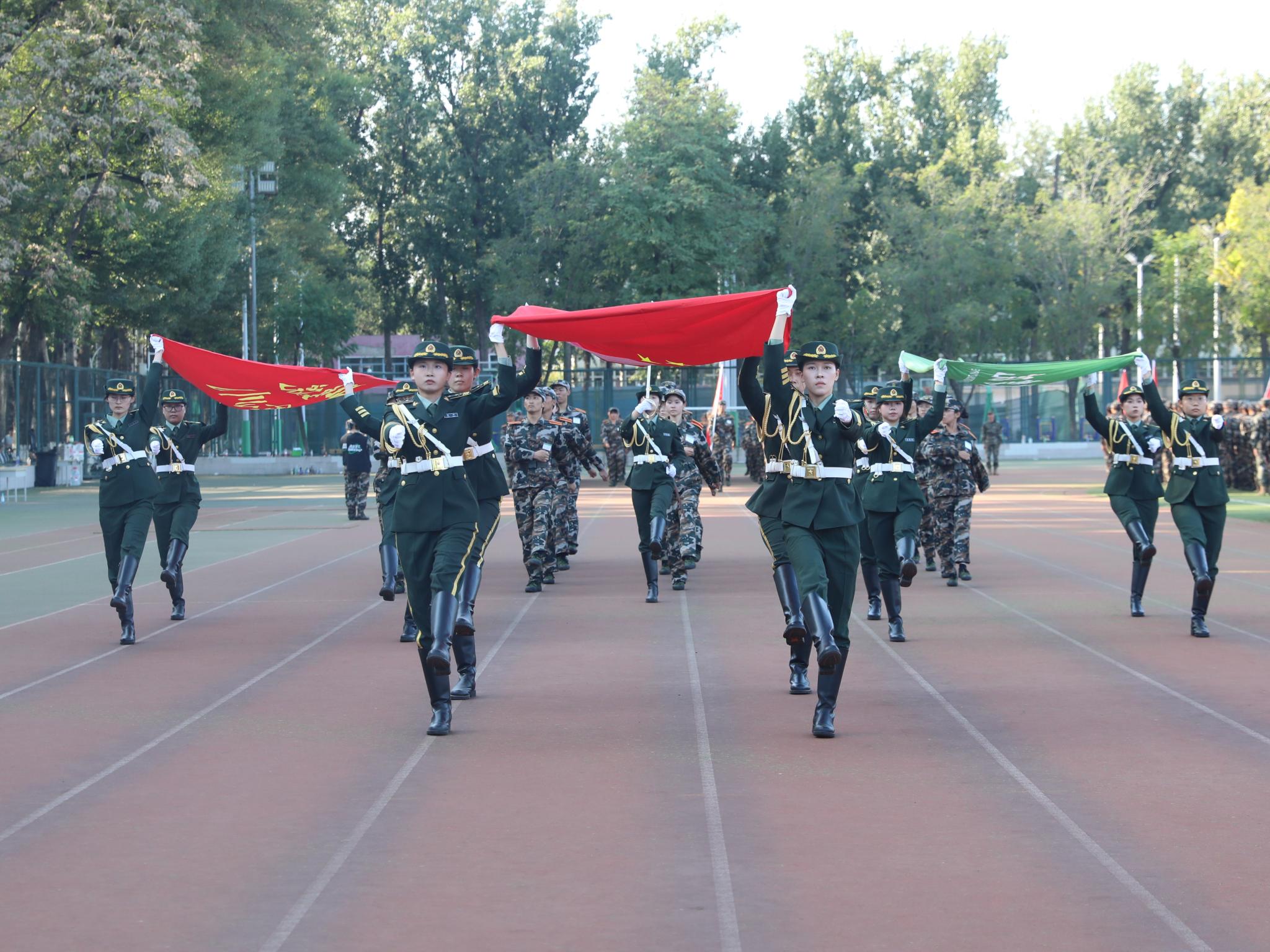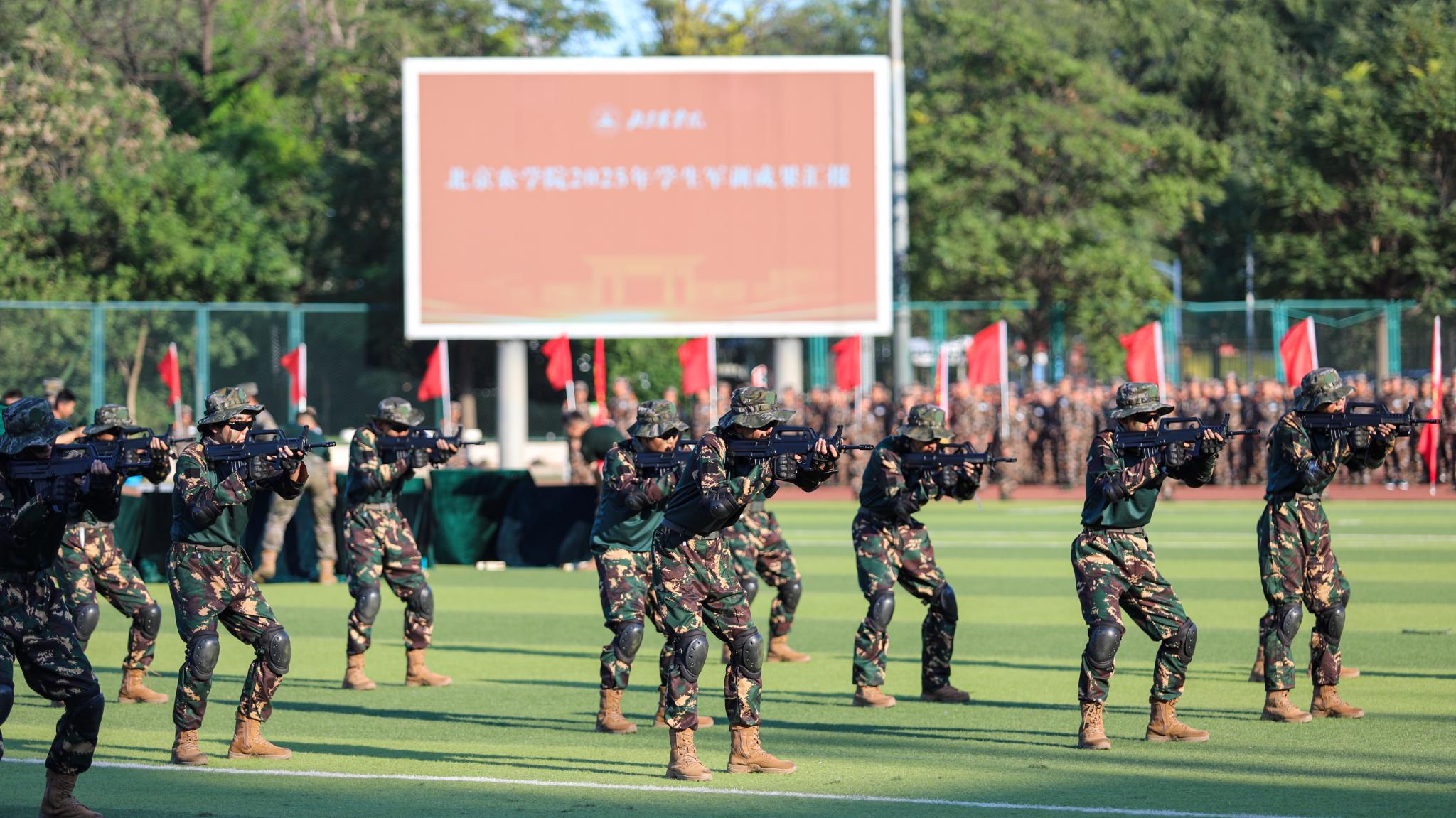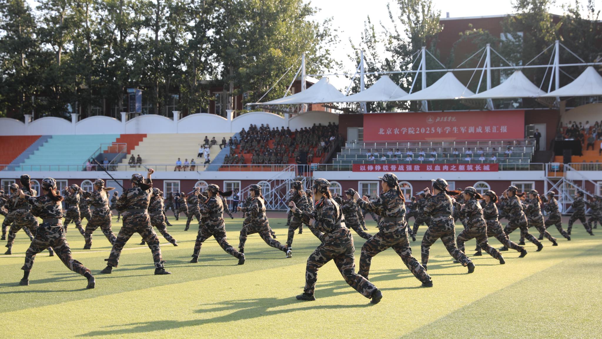 參訓學生進行了分列式展示和特色科目匯報表演。同學們口號響亮、步伐鏗鏘、隊列整齊,充分展現了北農學子昂揚向上的精神風貌和豐碩的軍訓成果,贏得了現場師生的陣陣掌聲。
