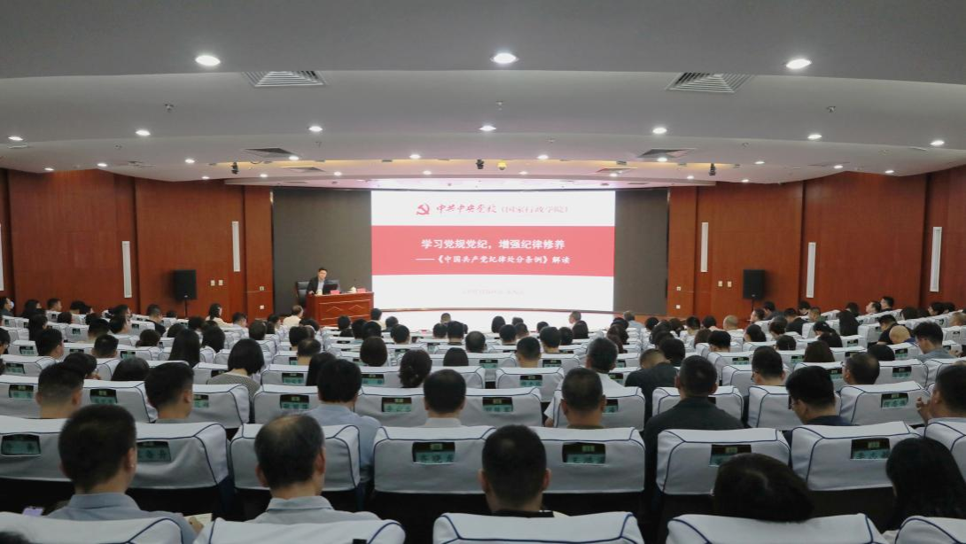 為進一步深入學習貫徹習近平總書記關于黨紀學習教育的重要講話和重要指示精神,深入學習新修訂的《中國共產黨紀律處分條例》(以下簡稱《條例》),扎實開展黨紀學習教育,5月10日下午,學校舉辦黨紀學習教育專題輔導報告會。全體校領導、中層干部、黨支部書記、部分科級干部、學校第二期青干班學員及師生黨員代表等共計300余人參加,黨委副書記仲叢生主持會議。