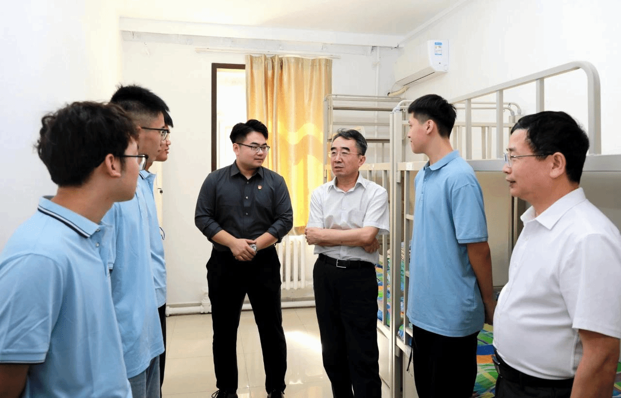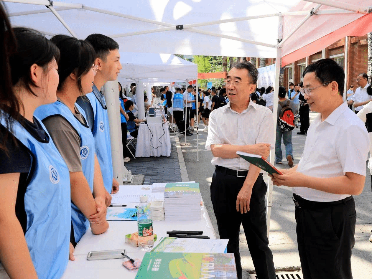 以及全體校領導來到迎新現(xiàn)場、學生宿舍等地
