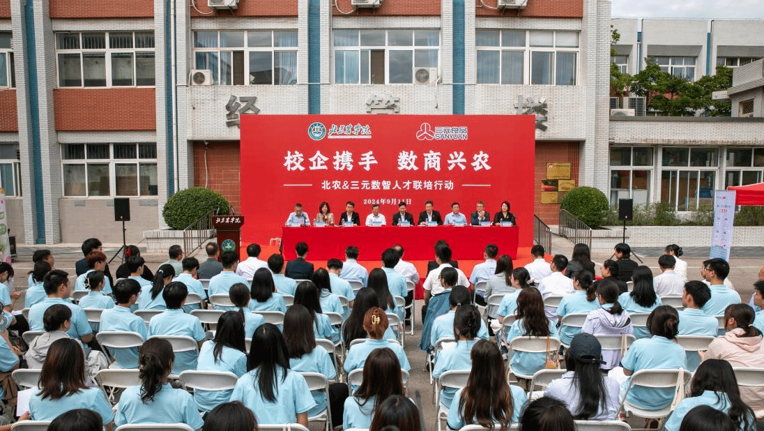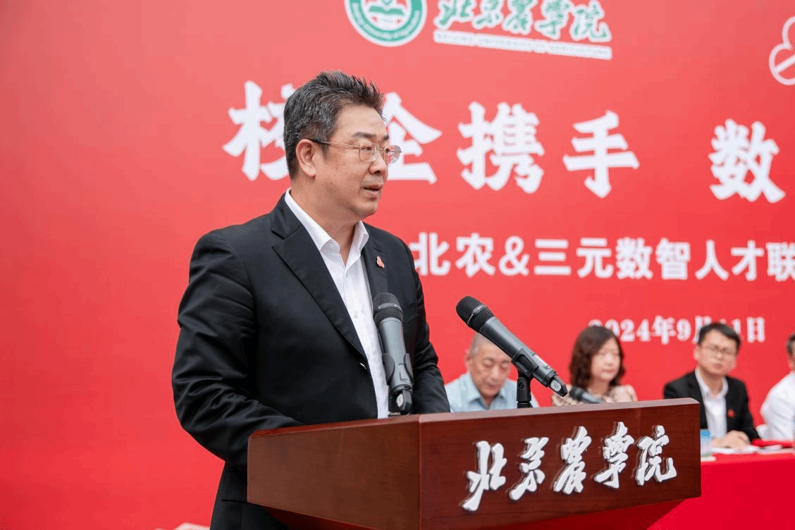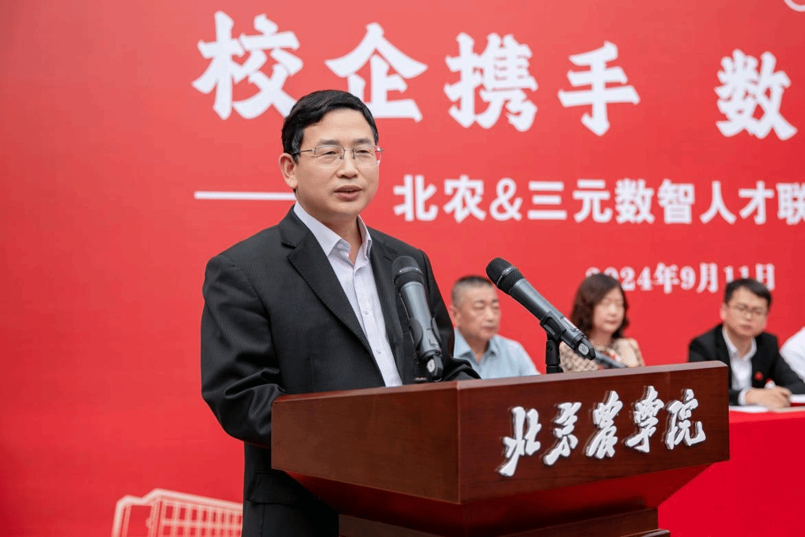 段留生代表學校全體師生,向長期以來關心和支持學校發展的北京三元食品股份有限公司表示衷心的感謝,對公司發展取得的顯著成績給予高度贊揚。他指出,此次校企雙方深度合作,攜手開啟“數智三元人才聯培行動”,既是深入貫徹落實黨的二十屆三中全會統籌推進教育科技人才體制機制一體改革的實際行動,也是培育新時代“雙師型”數智人才和數商興農青年、更好服務經濟社會和產業發展的有力舉措。希望校企雙方資源共享、優勢互補、互聯互通,在持續深化理論研究、深入推動人才培養與師資隊伍建設模式創新、不斷加強校企合作平臺建設等方面持續發力,為服務新時代首都發展和全面推進鄉村振興做出新的更大貢獻。