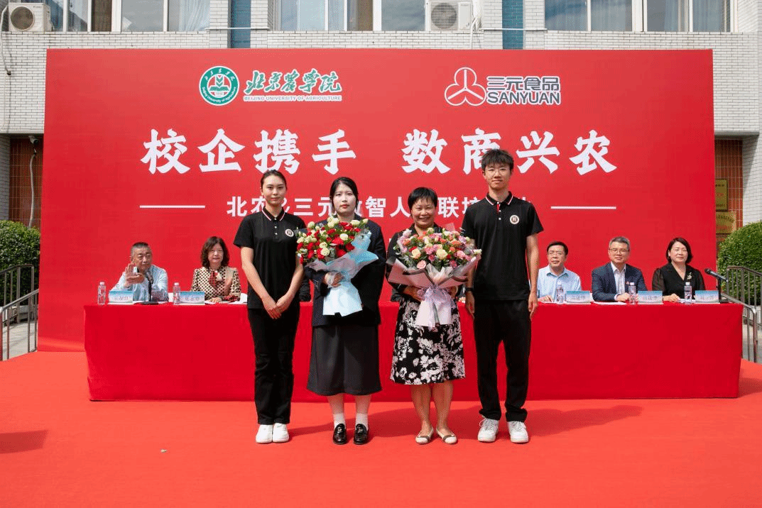 唐宏代表北京三元食品股份有限公司對學校長期以來的大力支持表示衷心的感謝,對學校近年來高質量黨建引領高質量發展取得的顯著成效給予充分肯定。他指出,在數字化、智能化飛速發展的時代,三元與北農的“數智人才聯培行動”以及“數智三元”研究生專項班,將成為數智化人才培養與輸送的重要橋梁。校企雙方合作將為三元培養符合企業文化的高素質數智化人才,為社會培養和輸出一批具有創新精神和數智技術的高水平人才。希望以“數智人才聯培行動”為契機,三元將一如既往緊密攜手北京農學院,共同構建校企合作育人新模式,推動首都農業高質量發展,產業轉型優化升級,為實現鄉村振興戰略目標貢獻更大力量。