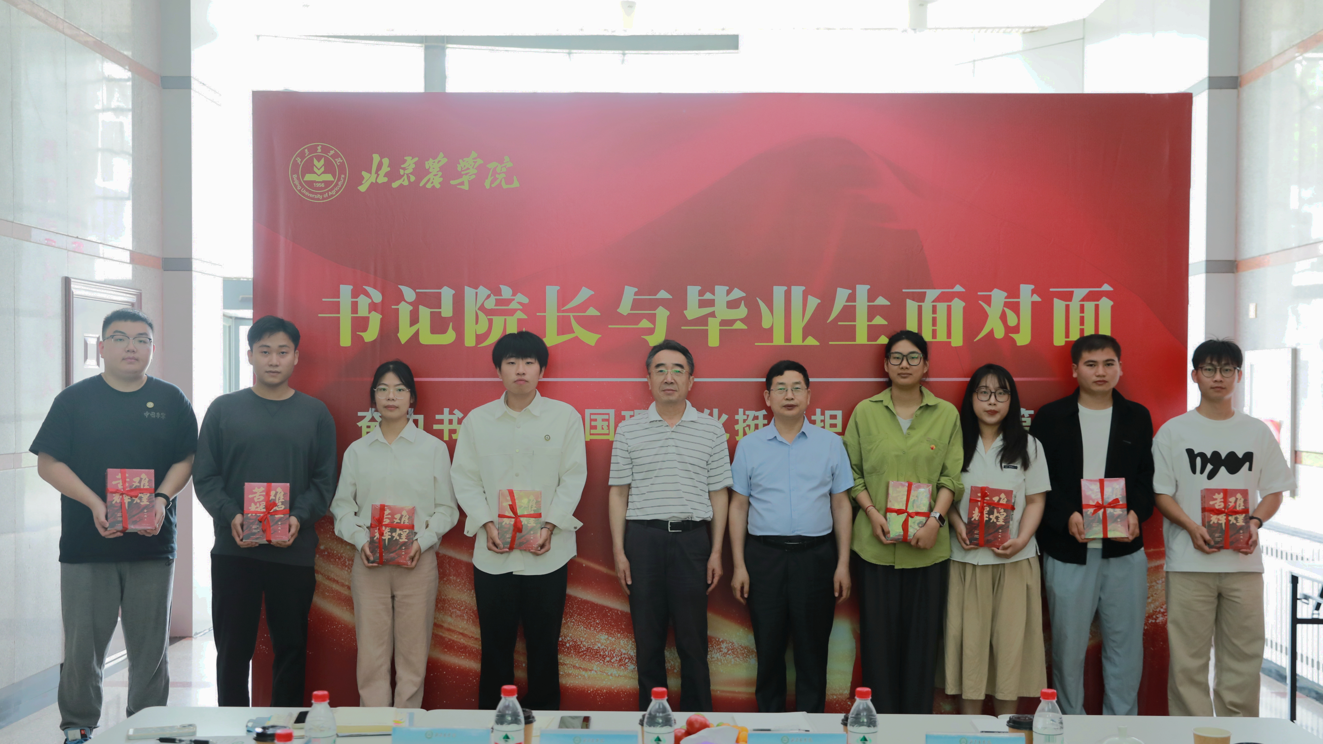 校領導向畢業生代表贈送書籍作為“畢業禮物”。